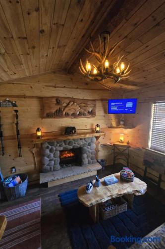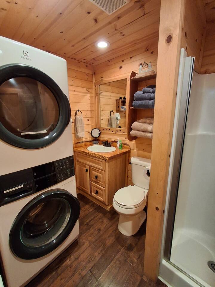 As you enter, you will be struck by the intricate, handcrafted custom woodwork that makes this tiny home truly one-of-a-kind. Despite its cozy size, the cabin boasts all the amenities you need for a comfortable stay for two. Key Features: * Relax by the cozy indoor fireplace. * Unwind in your own private hot tub, perfect for stargazing after a day of adventure. * Stream your favorite shows on the 24-inch smart TV (bring your own streaming accounts). Kitchen & Dining: * A fully equipped kitchen with a full-size stove and refrigerator. * Keurig coffee machine for your morning brew. * All the cooking essentials you need to prepare meals. * Please note: There is no indoor dining table or dishwasher. * Enjoy alfresco dining on the patio, complete with a BBQ grill and a fire pit for cozy evenings. Storage: * Space is limited and there are no closets, but we provide two luggage racks for your convenience.