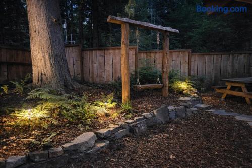 Guests will have private access to the entire Knotty Shack tiny cabin, including the private hot tub, patio, BBQ grill, and fire pit area. You will also have access to the shared community lake, where you can fish, swim, or simply soak up the sun. Explore the surrounding hiking trails and enjoy the stunning natural beauty of the Ashford area. We aim to give our guests complete privacy to enjoy their retreat. We will not be present during your stay, but our local contact is just a phone call away should you need anything. In the event of a power outage, our own communication may be delayed, but our local support remains available to assist you. * Seasonal Road Closures: FOREST ROAD 52 / SKATE CREEK ROAD, which travels between Packwood and Elbe, is often closed, especially during the winter months. Please check road conditions before traveling. * Power & Internet: Being in the mountains, power and internet can be intermittent due to weather. However, the Knotty Shack is equipped with a built-in generator, so you won't have to worry about power outages! You can even enjoy the hot tub during an outage. The cabin also has fiber optic internet. * Security: For your security and ours, a camera is installed on the exterior of the cabin, pointing at the driveway.